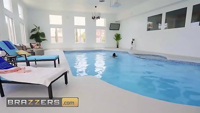 在泳池里与这位腹部宝贝俄罗斯女士进行僵硬的肛交