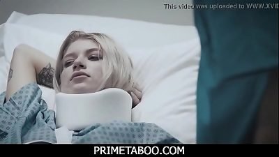 在他嫉妒的继母从超市回来之前,他殴打了穿着制服、没有戴安全套的继女,并用他的男人肉将她推到了沙发的角落里