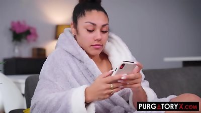 俄罗斯模特 Zlata 钉住阴户,被 Maximo Garcia 的大鸡鸡毁坏并尿尿